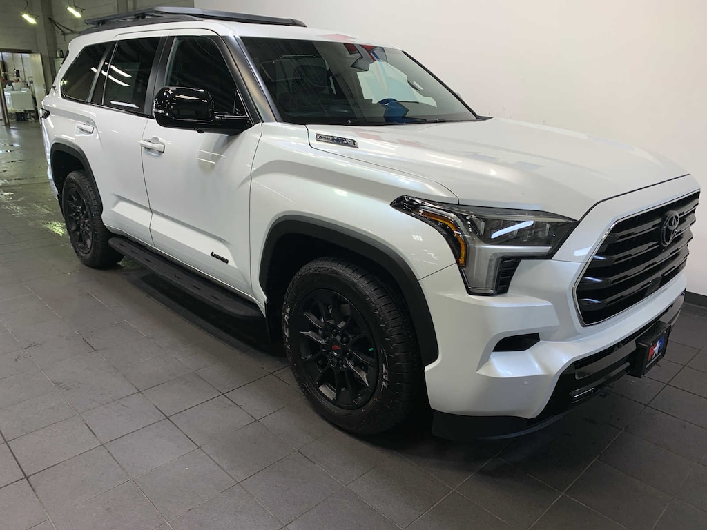 red TRD engine start button, Off-Road Suspension w/Bilstein Shocks, TRD OFF-ROAD Badging, Multi-Terrain Back Monitor (MTM), Electronically-Controlled Locking Rr Differential, Wheels: 20 Black TRD Alloy, Multi-Terrain Select (MTS), TRD Leather Shift Knob, Aluminum Sport Pedals, Aluminum Step & Step Cover, Downhill Assist Control (DAC), Crawl Control (CRAWL), Red Front-Axle Drive Shafts, Tires: 265/60R20 All-Terrain, TRD ROOF RACK (TMS), 14 JBL speakers, subwoofer and amplifier, Wireless Smartphone Charger, Qi-compatible w/charge indicator light, POWER TILT/SLIDE PANORAMIC ROOF W/POWER SUNSHADE, sequential turn signals. Toyota Limited with Wind Chill Pearl exterior and Black interior features a V6 Cylinder Engine with 437 HP at 5200 RPM*.