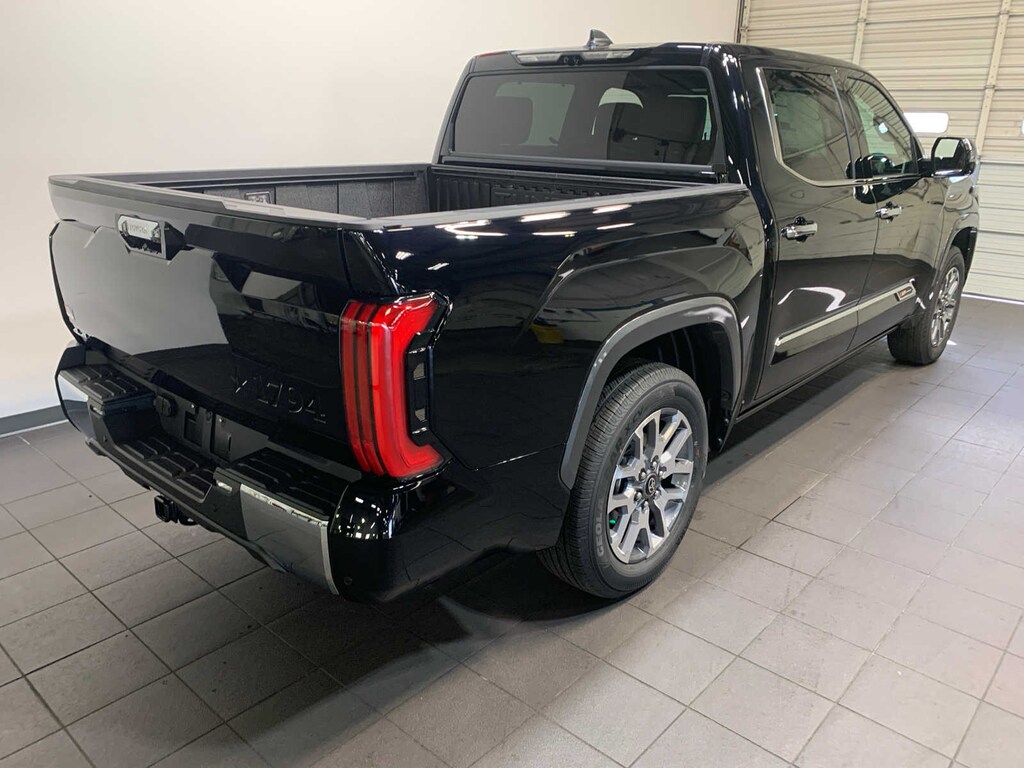 power deck step and step cover, automatic rear height control, HEAD UP DISPLAY (HUD), NON-SKID SPRAY-ON BED LINER (TMS). Toyota 1794 Edition with Midnight Black Metallic exterior and Saddle Tan interior features a V6 Cylinder Engine with 389 HP at 5200 RPM*.