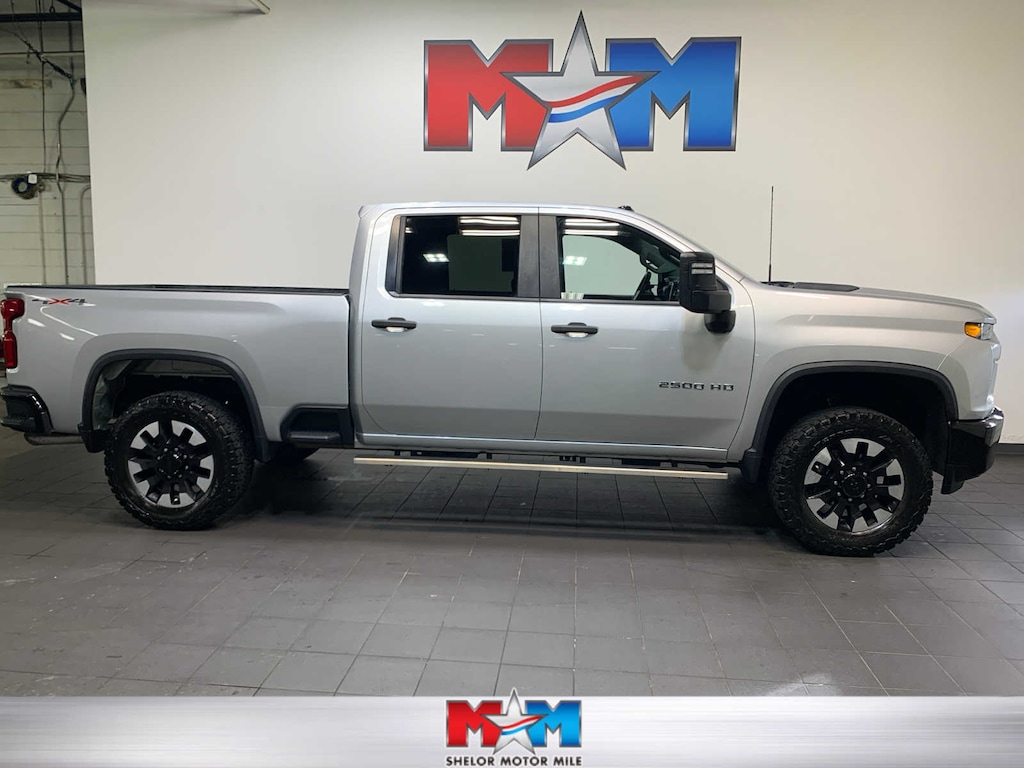 includes (BTV) Remote Start, (C49) rear-window defogger, (UF2) bed LED cargo area lighting, (QT5) EZ Lift power lock and release tailgate and (JL1) Trailer brake controller, includes (U2K) SiriusXM Radio and (UE1) OnStar, 7 diagonal color touchscreen, AM/FM stereo. Additional features for compatible phones include: Bluetooth® audio streaming for 2 active devices, voice command pass-through to phone, Apple CarPlay® and Android Auto® capable. (STD), with Direct Injection and Variable Valve Timing, gasoline, (401 hp [299 kW] @ 5200 rpm, 464 lb-ft of torque [629 N-m] @ 4000 rpm) (STD), (STD). Chevrolet Custom with Silver Ice Metallic exterior and Jet Black interior features a 8 Cylinder Engine with 401 HP at 5200 RPM*.