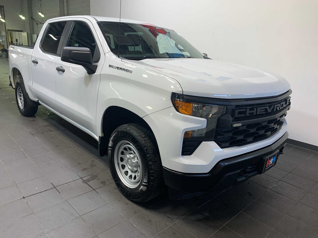 includes (AKO) tinted windows, (C49) rear-window defogger, (K34) cruise control and (DLF) power mirrors, AUTO-LOCKING REAR DIFFERENTIAL, GLASS, DEEP-TINTED, When (PQA) WT Safety Package is ordered, includes (DP6) high gloss Black mirror caps.), 7 diagonal color touchscreen, AM/FM stereo. Additional features for compatible phones include: Bluetooth® audio streaming for 2 active devices, voice command pass-through to phone, wired Apple CarPlay® and Android Auto® capable. (STD), with overdrive and tow/haul mode. Includes Cruise Grade Braking and Powertrain Grade Braking (STD). Chevrolet Work Truck with Summit White exterior and Jet Black interior features a 4 Cylinder Engine with 310 HP at 5600 RPM*. AutoCheck One Owner Nice