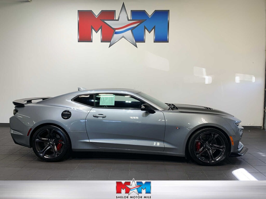 includes (G96) electronic limited slip differential, (NPP) dual-mode performance exhaust, (F55) Magnetic Ride Control, (FE4) performance suspension, (FTJ) Black front splitter, (DSM) Satin Black hood wrap, (D5S) Satin Black rear blade spoiler, (R0G) 285/30R20 front and 305/30R20 rear, blackwall, summer-only tires, (RSK) 20 x 10 front and 20 x 11 rear Satin Graphite forged aluminum wheels, (AQJ) RECARO performance front bucket seats, (N26) sueded-wrapped, flat-bottom steering wheel and (KS9) sueded-wrapped shift knob; also includes (J6M) Brembo Red, 6-piston front monobloc calipers, 4-piston rear calipers, 2-piece rotors, performance, 4-wheel antilock, 4-wheel disc brakes for non-CA/WA ship-to orders, CA/WA ship-to require (BCD) Performance copper-free brake system; also includes (HRD), SEATS, LEATHER-TRIMMED WITH SUEDED INSERTS FRONT BUCKET, RECARO PERFORMANCE, includes transmission oil cooler and (BTV) remote vehicle starter system, Bluetooth® audio streaming for 2 active devices, Apple CarPlay® and Android Auto® capable, voice recognition, in-vehicle apps, cloud connected personalization for select infotainment and vehicle settings. Subscription required for enhanced and connected services after trial period. (STD), (455 hp [339.3 kW] @ 6000 rpm, 455 lb-ft of torque [614.3 N-m] @ 4400 rpm) (STD). Chevrolet 1SS with Sharkskin Metallic exterior and Jet Black interior features a 8 Cylinder Engine with 455 HP at 6000 RPM*. Serviced here, Local Trade-In