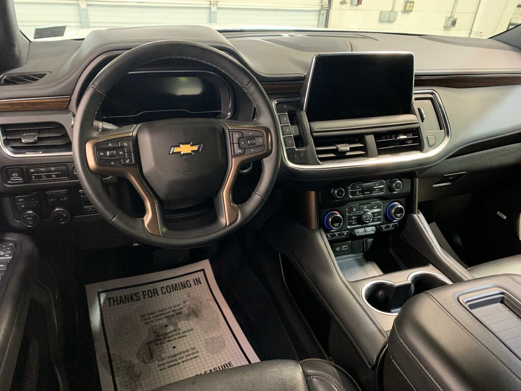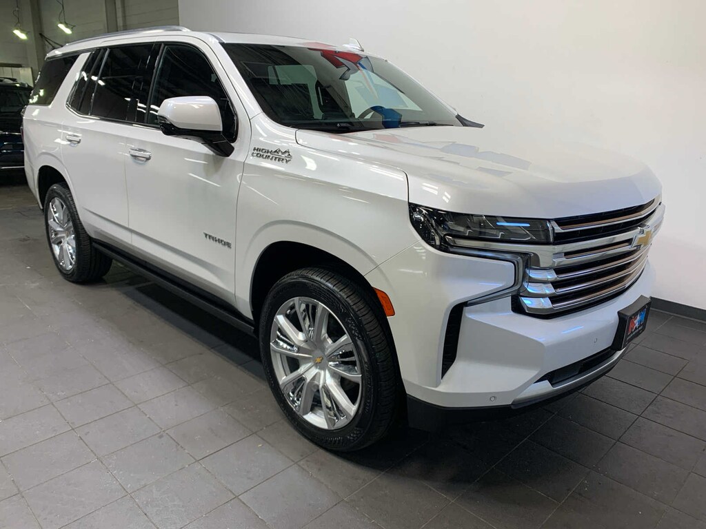 includes (C3U) Panoramic power sunroof, (NHT) Max Trailering Package, (B3L) power-retractable assist steps with perimeter lighting and (F47) Air Ride Adaptive suspension, includes dual rear seat-mounted 12.6 diagonal color-touch LCD HD screens, two Bluetooth® headphones with 2 HDMI ports on the back of the center console, (select service plan required, terms and limitations apply), including nav capability, 10.2 diagonal HD color touchscreen, includes multi-touch display, AM/FM stereo, Bluetooth® streaming audio for music and most phones; featuring wireless Apple CarPlay® and wireless Android Auto® capability for compatible phones, advanced voice recognition, in-vehicle apps, personalized profiles for infotainment and vehicle settings (STD), with Dynamic Fuel Management, Direct Injection and Variable Valve Timing, includes aluminum block construction (420 hp [313 kW] @ 5600 rpm, 460 lb-ft of torque [624 Nm] @ 4100 rpm) (STD), electronically controlled with overdrive, includes Traction Select System including tow/haul (STD), includes (PZ8) Hitch View, (JL1) trailer brake controller and (UET) Smart Trailer Integration Indicator Also includes (UKV) Extended Side Blind Zone Alert.). Chevrolet High Country with Iridescent Pearl Tricoat exterior and Jet Black interior features a 8 Cylinder Engine with 420 HP at 5600 RPM*. New Tires AutoCheck One Owner Very Nice