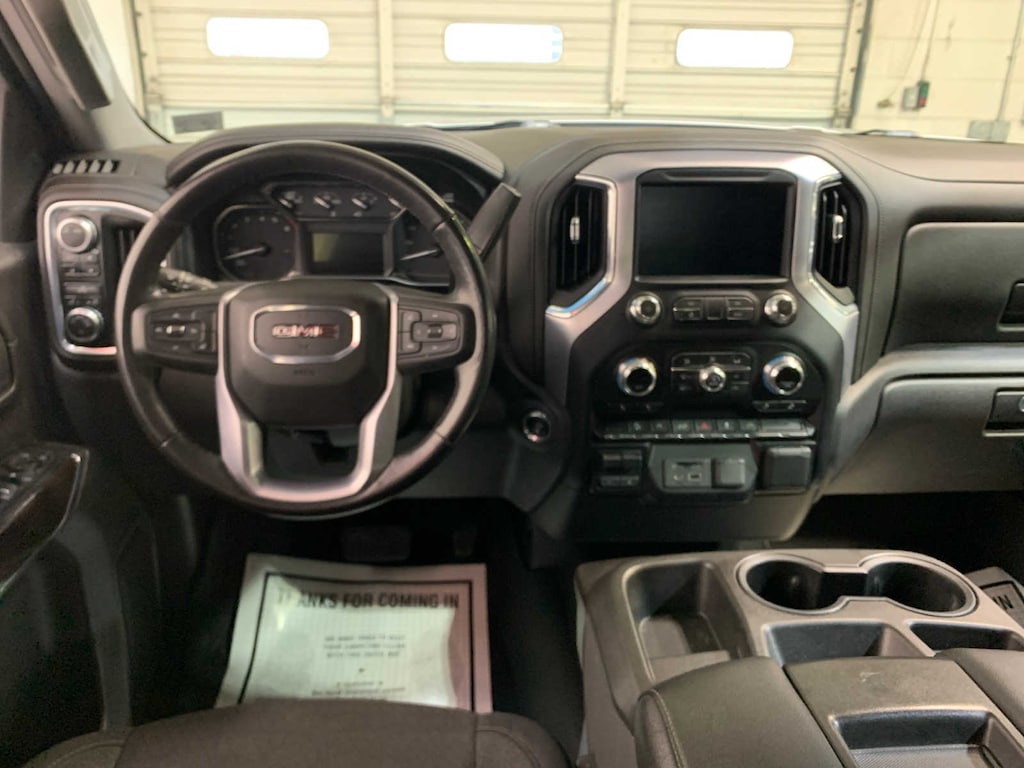 (355 hp [265 kW] @ 5600 rpm, 383 lb-ft of torque [518 Nm] @ 4100 rpm); featuring available Dynamic Fuel Management that enables the engine to operate in 17 different patterns between 2 and 8 cylinders, depending on demand, to optimize power delivery and efficiency, includes Off-Road suspension, (JHD) Hill Descent Control, (NZZ) skid plates, (K47) heavy-duty air filter and X31 hard badge Includes (UHN) 18 6-spoke machined aluminum wheels with Dark Grey Metallic accents, (XCK) 265/65R18SL all-terrain, blackwall tires and (NQH) 2-speed Auto-Trac transfer case. Includes (N10) dual exhaust. includes (UG1) Universal Home Remote, (A48) rear sliding power window, (KI4) 120-volt power outlet, (KC9) 120-volt bed-mounted power outlet, (IOS) 8 diagonal Premium GMC Infotainment System, SiriusXM with 360L, (UVB) HD Rear Vision Camera and (U2L) HD Radio Crew Cab models include (R7O) Cloth Rear Seat Storage Package. Includes (MCR) USB Ports (Instrument Panel with bench seat). Certain 21MY vehicles will include (RG0) Not Equipped with HD Radio, which removes (U2L) HD Radio. See dealer for details.), (dealer-installed), DEFOGGER, REAR-WINDOW ELECTRIC, Bluetooth® streaming audio for music and most phones; featuring wireless Android Auto® and Apple CarPlay® capability for compatible phones, advanced voice recognition, in-vehicle apps, personalized profiles for infotainment and vehicle settings Includes SiriusXM with 360L.), with overdrive and tow/haul mode. Includes Cruise Grade Braking and Powertrain Grade Braking (No longer available on 4WD models built with (L84) 5.3L EcoTec3 V8 engine after December 15, 2020. includes seatback storage on left and right side, center fold out armrest with 2 cupholders, (includes child seat top tether anchor). GMC SLE with Quicksilver Metallic exterior and Jet Black interior features a 8 Cylinder Engine with 355 HP at 5600 RPM*. AutoCheck One Owner Very Nice