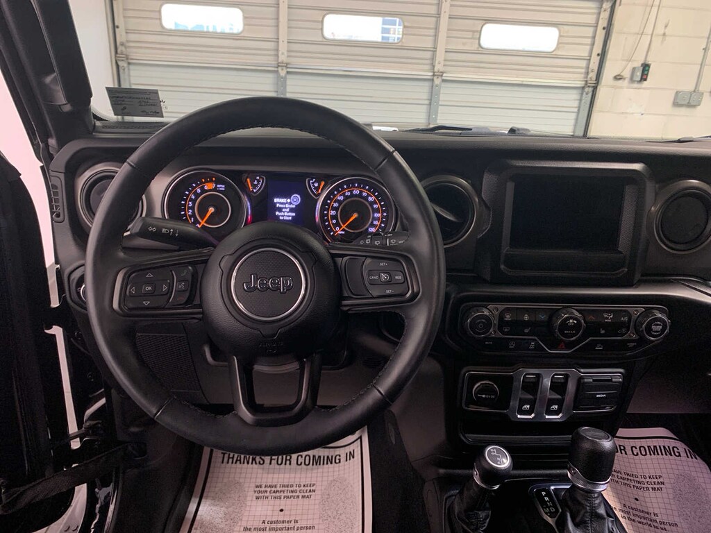 Engine: 2.0L I4 DOHC DI Turbo w/ESS, Transmission: 8-Speed Automatic (850RE), Front 1-Touch Down Power Windows, Speed Sensitive Power Locks, Sport S, Power Heated Mirrors, Automatic Headlamps, Premium Wrapped Steering Wheel, Security Alarm, Remote Keyless Entry, Sun Visors w/Illuminated Vanity Mirrors, Anti-Lock 4-Wheel Disc Brakes, Dana M200 Rear Axle, Selec-Speed (TM) Control, Freedom Panel Storage Bag, Rear Window Defroster, Rear Window Wiper/Washer, No Soft Top, Heated Steering Wheel, Remote Start System, Heated Front Seats, Universal Garage Door Opener, SIDE STEPS, SIRIUSXM SATELLITE RADIO, ENGINE: 2.0L I4 DOHC DI TURBO W/ESS. Jeep Sport S with Black Clearcoat exterior and Black interior features a 4 Cylinder Engine with 270 HP at 5250 RPM*. Serviced here, Local Trade-In