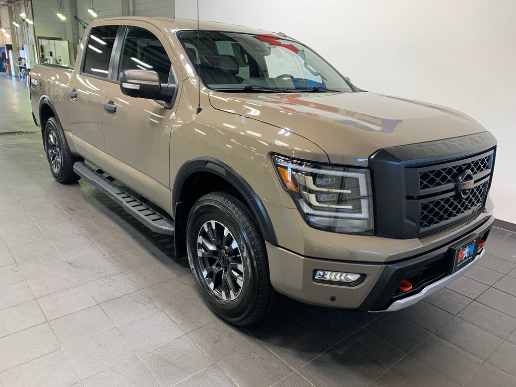 4-Way Power Assist Seat, Memory Driver Seat w/Auto Entry/Exit Feature, Heated Driver & Passenger Seat, Heated Rear Seats, Remote Engine Start on Key Fob, Side Turn Signal Lamps on Mirror Housing, Heated Power Tilt/Telescopic Steering Wheel, memory, Power Folding Auto Dimming Outside Mirrors, memory and reverse auto tilt, Puddle Lamps, Intelligent Around View Monitor (I-AVM), Moving Object Detection (MOD), LED Tailgate Area Illumination, Trailer Brake Controller, LED Under Rail Bed Lighting, Fender Premium Audio System w/12 Speakers, amplifier, underseat subwoofer, center channel speaker and front and rear tweeters, Front & Rear Parking Sensors, Proximity Activation, LED signature headlamps and cargo lamp, 110V Outlet in Bed, Utilitrack System w/4 Tie-Down Cleats, Trailer Light Check Function On Key Fob, Power Sliding Rear Window w/Defogger, Rear Utility Bed Step, Electronic Locking Tailgate, PRO4X RUGGED STEP BOARDS, crew cab interior door scuff protection, off-road adventure kit and adventure medic kit, All Season Floor Mats. Nissan PRO-4X with Baja Storm exterior and Black interior features a 8 Cylinder Engine with 400 HP at 5800 RPM*. Local Trade-In Very Nice