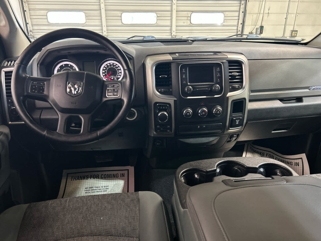 GVWR: 6,900 lbs, Electronically Controlled Throttle, Heavy Duty Engine Cooling, Next Generation Engine Controller, Hemi Badge, Heavy Duty Transmission Oil Cooler, TRANSMISSION: 8-SPEED AUTOMATIC (8HP70), Transmission: 8-Speed Automatic (8HP70), Full Size Temporary Use Spare Tire, Leather Wrapped Steering Wheel, Steering Wheel Mounted Audio Controls, Bright/Bright Billets Grille, Locking Lug Nuts, Big Horn Regional Package, Electric Shift On Demand Transfer Case, Dual Rear Exhaust w/Bright Tips, Big Horn Badge, RADIO: UCONNECT 5.0. Ram Big Horn with Brilliant Black Crystal Pearlcoat exterior and Diesel Gray/Black interior features a 8 Cylinder Engine with 305 HP at 6400 RPM*. Local Trade-In