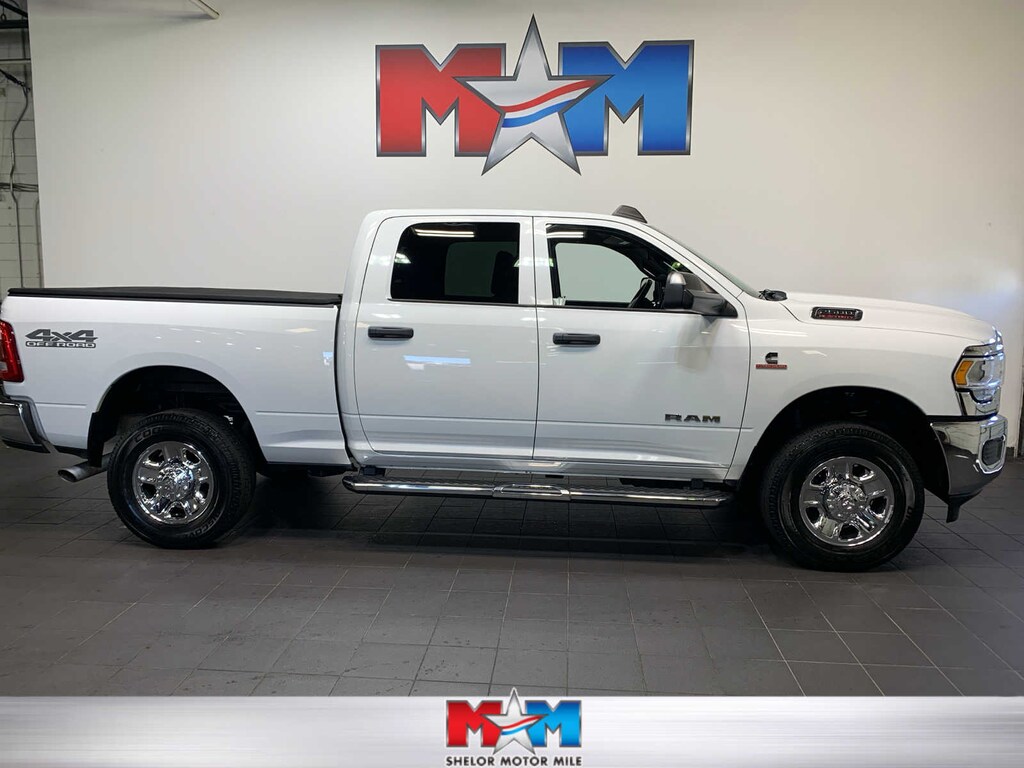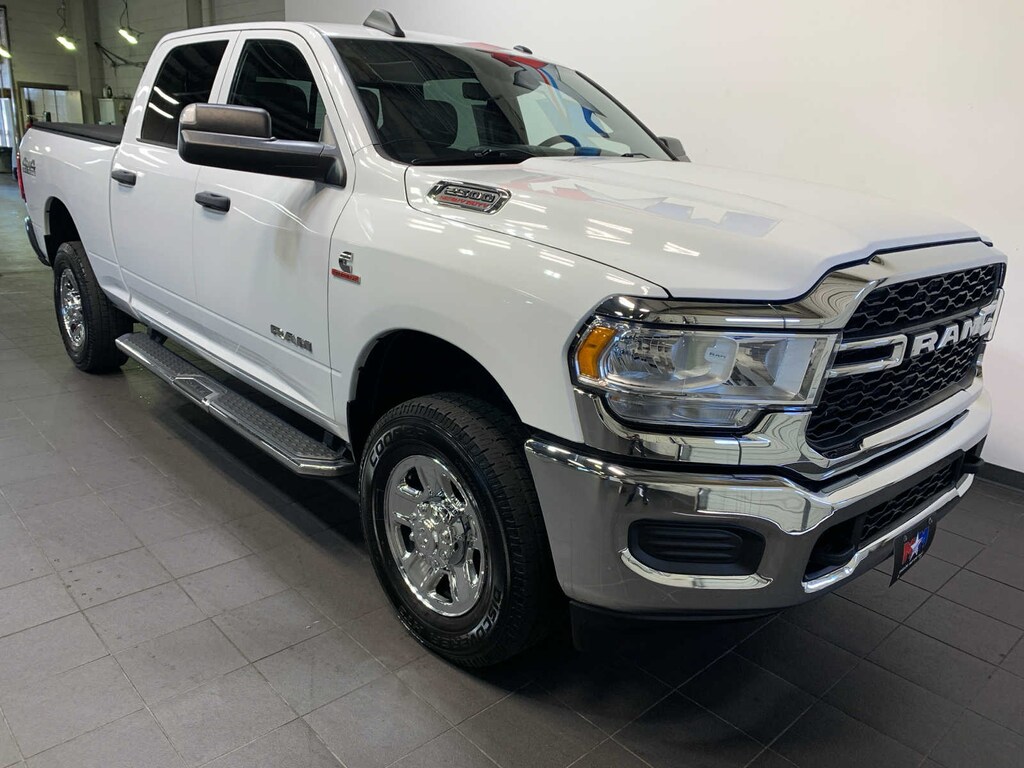Selective Catalytic Reduction (Urea), Dual 730 Amp Maintenance Free Batteries, Cummins Turbo Diesel Badge, Heavy Duty Engine Cooling, Tow Hooks, Diesel Exhaust Brake, Supplemental Heater, Front Bumper Sight Shields, Capless Fuel Fill w/o Discriminator, Blind Spot & Cross Path Detection, LED Tail Lamps, Mirror Running Lights, Exterior Mirrors w/Supplemental Signals, Power Folding Mirrors, Power Adjust/Fold & Heated Black Tow Mirrors, Exterior Mirrors Courtesy Lamps, Trailer Tow Mirrors, Rain Sensitive Windshield Wipers, Leather Wrapped Steering Wheel, Steering Wheel Mounted Audio Controls, Adaptive Steering System, Full Speed Forward Collision Warning Plus, Auto High Beam Headlamp Control, Cluster 7.0 TFT Color Display, Adaptive Cruise Control w/Stop, Digital Rearview Mirror, Lane Keep Assist, SiriusXM Satellite Radio, Rear Window Defroster, Carpet Floor Covering, Rear Power Sliding Window, Bright Rear Bumper, Chrome Grille Surround, 18 Steel Spare Wheel, Wheels: 18 x 8.0 Steel Chrome Clad, Tires: LT275/70R18E BSW AS, Bright Front Bumper, Google Android Auto®, SiriusXM Satellite Radio, Cluster 3.5 TFT Color Display, Integrated Center Stack Radio, 8.4 Touchscreen Display, Apple CarPlay®, CHROME FLAT CAB-LENGTH SIDE STEPS, MOPAR SPRAY IN BEDLINER, ANTI-SPIN DIFFERENTIAL REAR AXLE, PARKSENSE REAR PARK ASSIST SYSTEM, Urethane Shift Control. Ram Tradesman with Bright White Clearcoat exterior and Diesel Gray/Black interior features a Straight 6 Cylinder Engine with 370 HP at 2800 RPM*. AutoCheck One Owner Nice