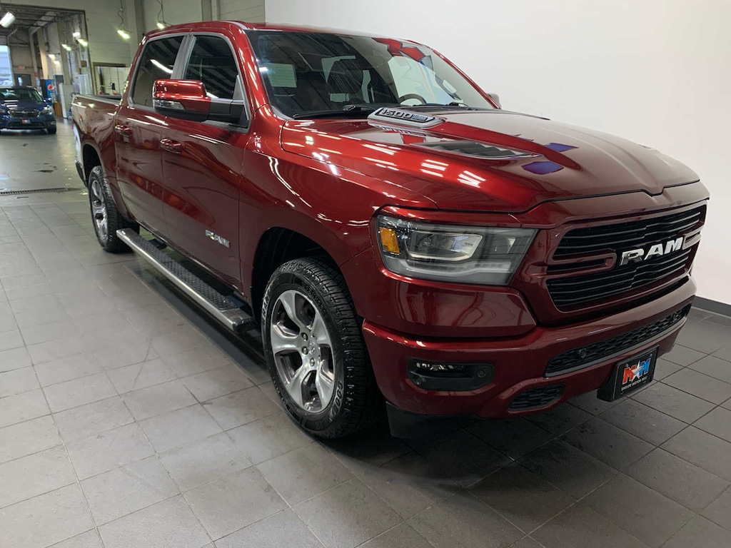 Active Noise Control System, Heavy Duty Engine Cooling, Passive Tuned Mass Damper, GVWR: 7,100 lbs, Dual Rear Exhaust w/Bright Tips, HEMI Badge, 23 Gallon Fuel Tank, 18 Aluminum Spare Wheel, Rear Window Defroster, Blind Spot & Cross Path Detection, Rain Sensitive Windshield Wipers, ParkSense Front/Rear Park Assist w/Stop, Rear Power Sliding Window, 12 Touchscreen Display, Front LED Fog Lamps, LED Reflector Headlamps, Foam Bottle Insert (Door Trim Panel), Radio: Uconnect 5 Nav w/12.0 Display, Remote Tailgate Release, Auto High Beam Headlamp Control, Electric Shift On Demand Transfer Case, Front Door Accent Lighting, 2nd Row In Floor Storage Bins, Rear Door Accent Lighting, Tires: 275/55R20 OWL All Season, Body Color Premium Power Mirrors, Sport Performance Hood, Sport Decal, Wheels: 20 x 9 Premium Painted w/Inserts, Body Color Exterior Mirrors, Black Interior Accents, Body Color Front Bumper, Body Color Rear Bumper w/Step Pads, Grille Surround 3 Body Color Tex 2 Black, Bucket Seats, Center Console Parts Module, Full Length Upgraded Floor Console, ANTI-SPIN DIFFERENTIAL REAR AXLE, CLASS IV RECEIVER HITCH, TRANSMISSION: 8-SPEED AUTOMATIC (8HP75). Ram Laramie with Delmonico Red Pearlcoat exterior and Black interior features a 8 Cylinder Engine with 395 HP at 5600 RPM*. Local Trade-In